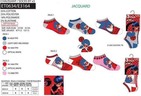 Miraculous Ladybug 6 paar enkel sokken maat 27/30